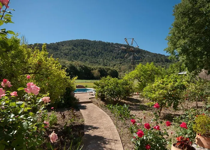 Hort Den Gelos Campanet Mallorca dispose d'une terrasse avec vue sur les montagnes, ainsi que d'une piscine privée. Proposant du Wi-Fi, la villa est située à 3 km des Grottes de Campanet.